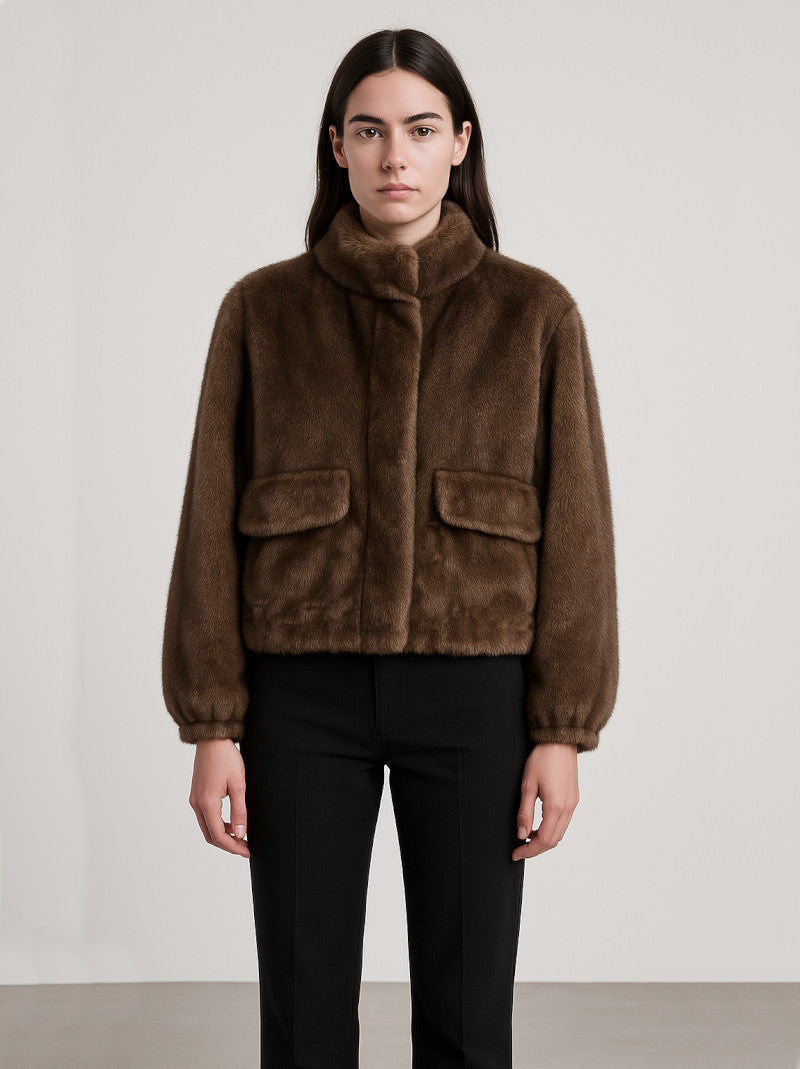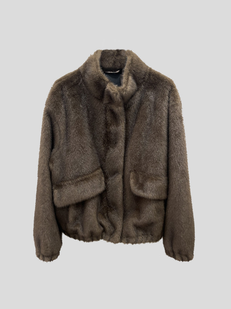 Chaqueta Teddy de FUCHS SCHMITT en tejido ecopiel SIMIL VISÓN perfectamente conseguido. Exterior en pelo sintético, interior en forro de poliéster. Cuello mao, cierre frontal por corchetes invisibles, puños y bajo elásticos. Bolsillos de tapeta.