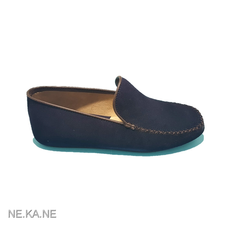 Zapatilla de Hombre GADEA MEROÑO modelo 30002 estilo MOCASÍN de ante color MARINO cerrada de talón. Detalle de ribete en piel y costura en zig-zag. Suela fina de goma antideslizante. Cuña baja. Interior en algodón con talón acolchado en ante.