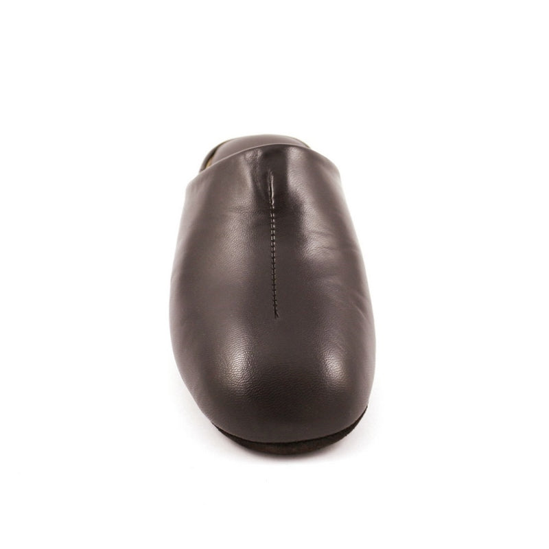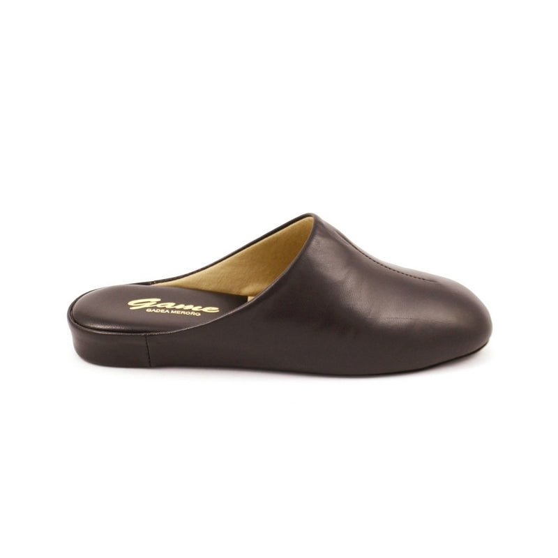 Zapatilla clásica de hombre GADEA MEROÑO modelo 710 de piel color MARRÓN abierta de talón. Es lisa con una pequeña costura en el centro de la pala. Suela realizada en serraje o piel vuelta, lo que se llama piso silencioso. Tiene una horma ancha.