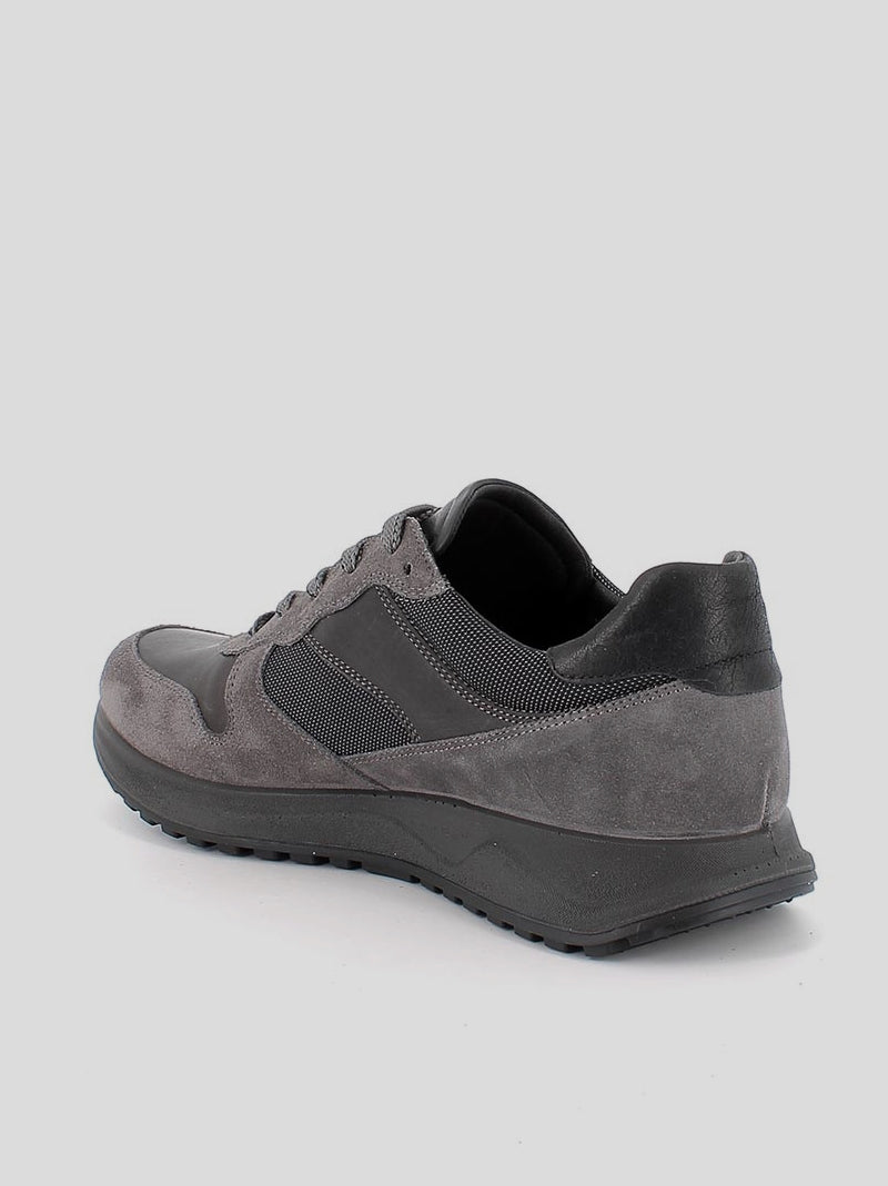 Deportiva de Hombre IGI&CO en piel suave y ante combinado con tejido en tonos GRIS ANTRACITA con membrana interior de GORE-TEX. Suela de goma antideslizante con cuña de 3 cm. Plantilla extraíble de piel acolchada. Ajuste por cordones. Tobillo acolchado.