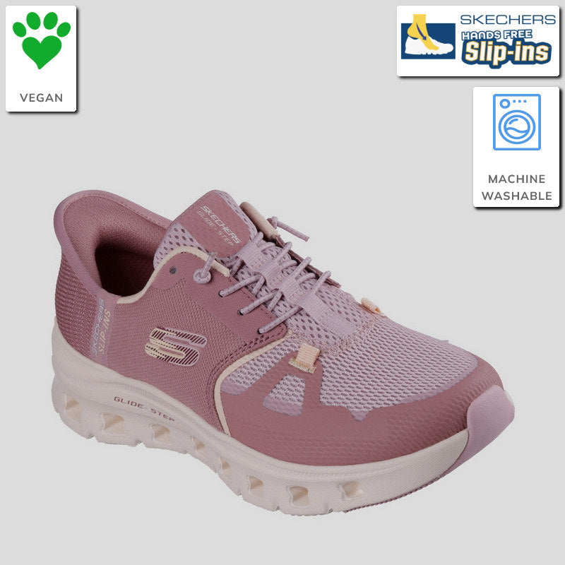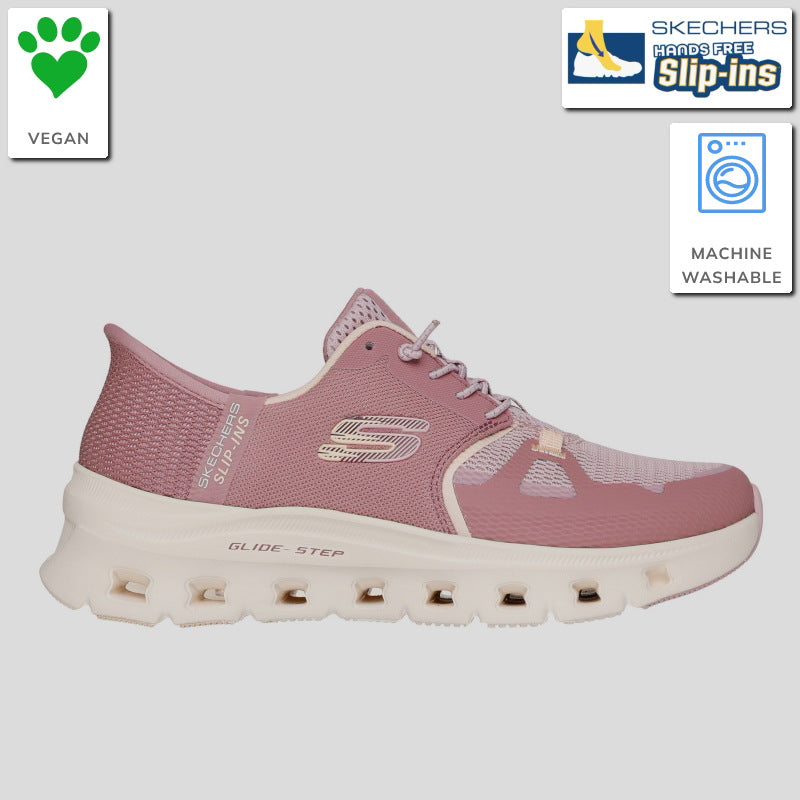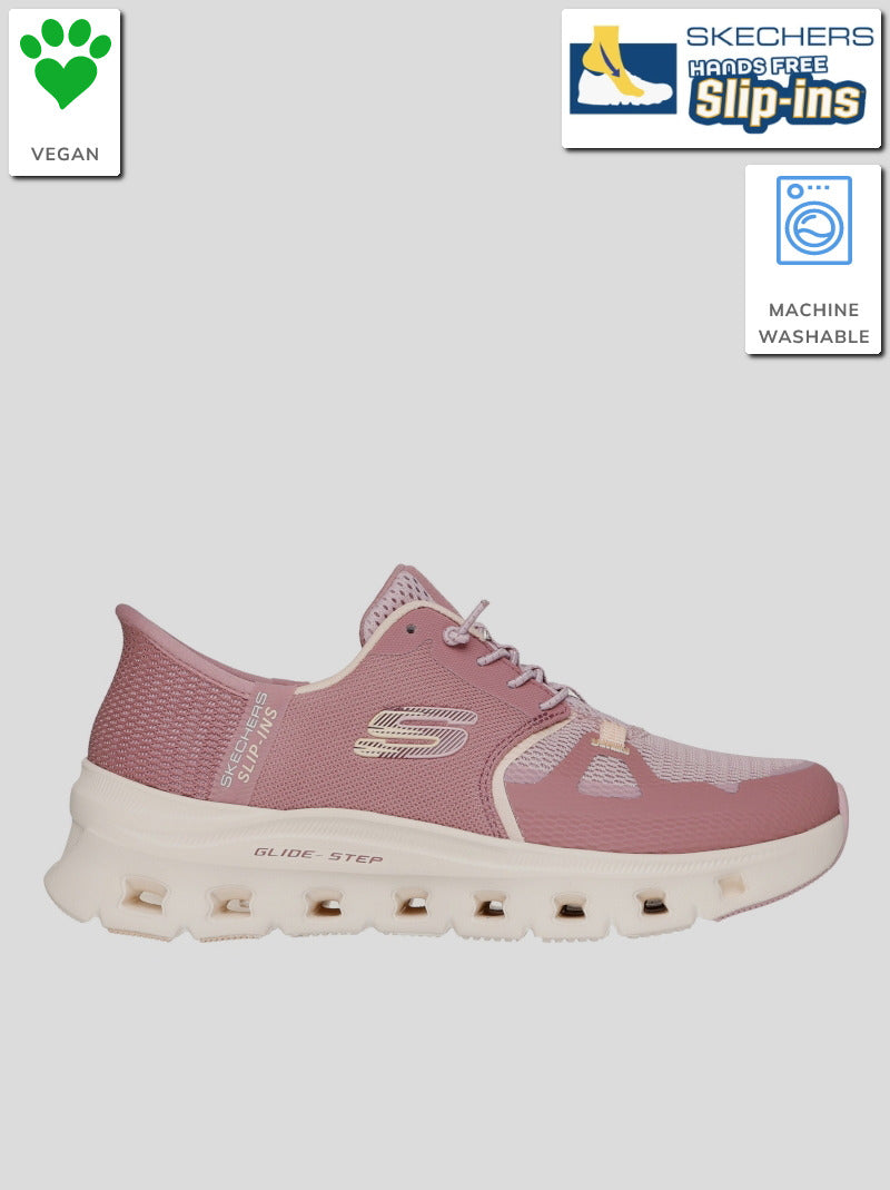 Deportiva de Mujer SKECHERS SLIPS-INS modelo GLIDE-STEP PRO color ROSA MALVA. Suela flexible con TRACCIÓN ARTICULADA. Talonera HEEL PILLOW™ permite ponerse la deportiva sin usar las manos "HANDS FREE". Tejido técnico VEGANO. Cordones elásticos EXTRAÍBLES.