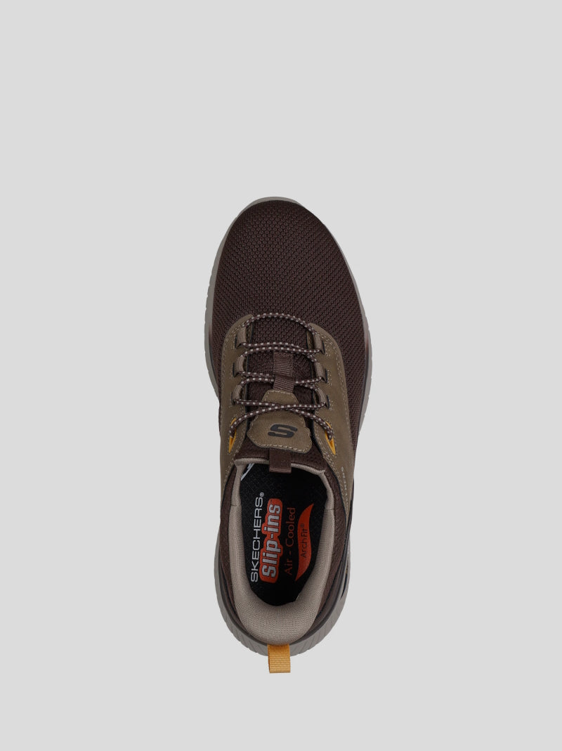 SKECHERS Hombre Hands Free Slip-ins® Relaxed Fit™ Arch Fit® Crosser-Chozen MARRÓN. Diseñadas con el sistema exclusivo Heel Pillow™. Parte superior de malla de knit y material sintético con cordones elásticos decorativos, plantilla Arch Fit® extraíble.