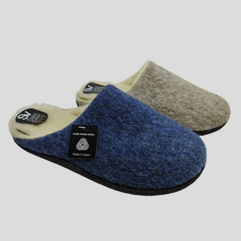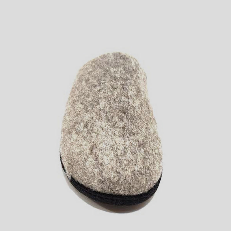 Zapatilla Abierta de casa BIAGIO confeccionada en PURA LANA VIRGEN color TAUPE. Forro interior en lana. Lleva una plantilla interior acolchada de CUÑA EXTRAÍBLE forrada de lana. Suela de goma flexible y antideslizante. Zapatilla superligera y cómoda.