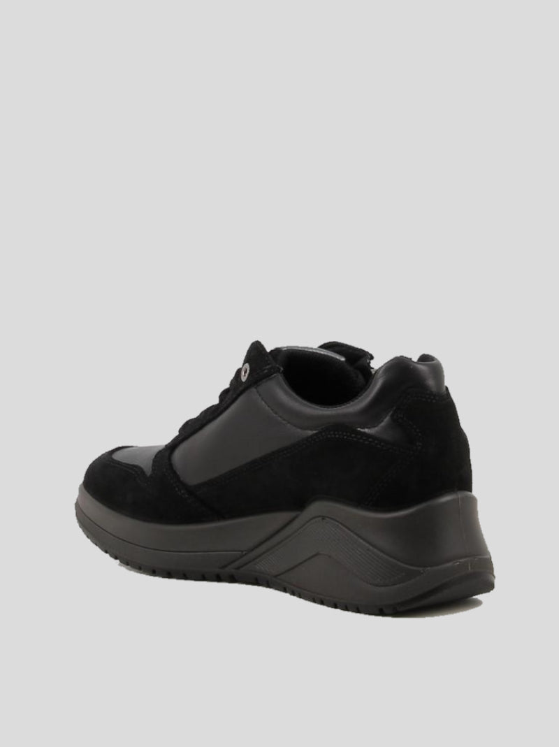 Deportiva mujer IGI&CO de cuña media en PIEL y ANTE color NEGRO. Membrana interior de GORE-TEX que la hace totalmente impermeable y transpirable. Dispone de PLANTILLA EXTRAÍBLE con Memory Foam. Ajuste doble por cordones y cremallera. Suela Sock Absorber.
