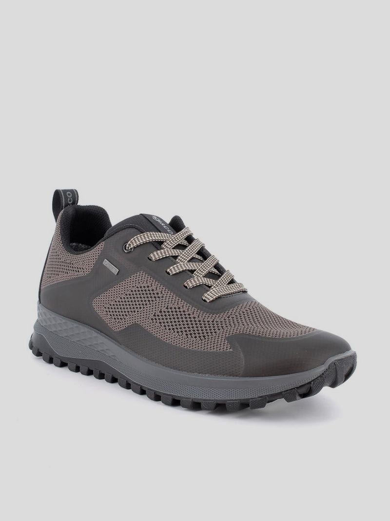 Deportiva estilo trail de Hombre IGI&CO fabricada en tejido técnico transpirable MARRÓN TÓRTOLA con inserciones termoplásticas. Membrana interior de GORE-TEX. Plantilla de piel EXTRAÍBLE. Cierre por cordones elásticos. Suela de goma tipo track flexíble