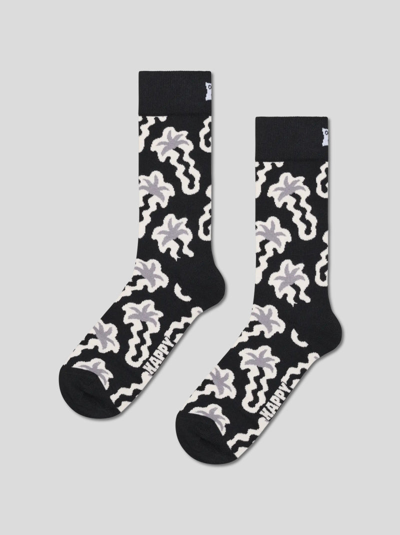 Caja de calcetines HAPPY SOCKS mezcla de algodón orgánico peinado modelo 3-Pack Black And White con talón y dedo del pie reforzados. Esta caja incluye 3 modelos de calcetines en BLANCO y NEGRO con estampados originales. Color clásico con diseño divertido.