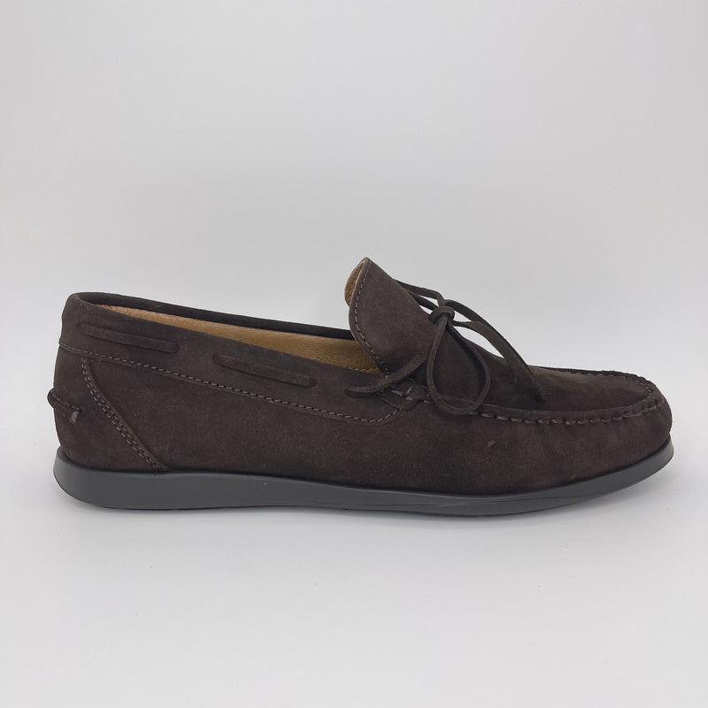 Mocasín de Hombre con corte estilo naútico de PIELSA confeccionado en ante color MARRÓN CAFÉ. Detalle de cordones, tacón plano de 2 cm y suela de goma actualizada y extraligera. Plantilla de piel acolchada. Forro interior de piel.