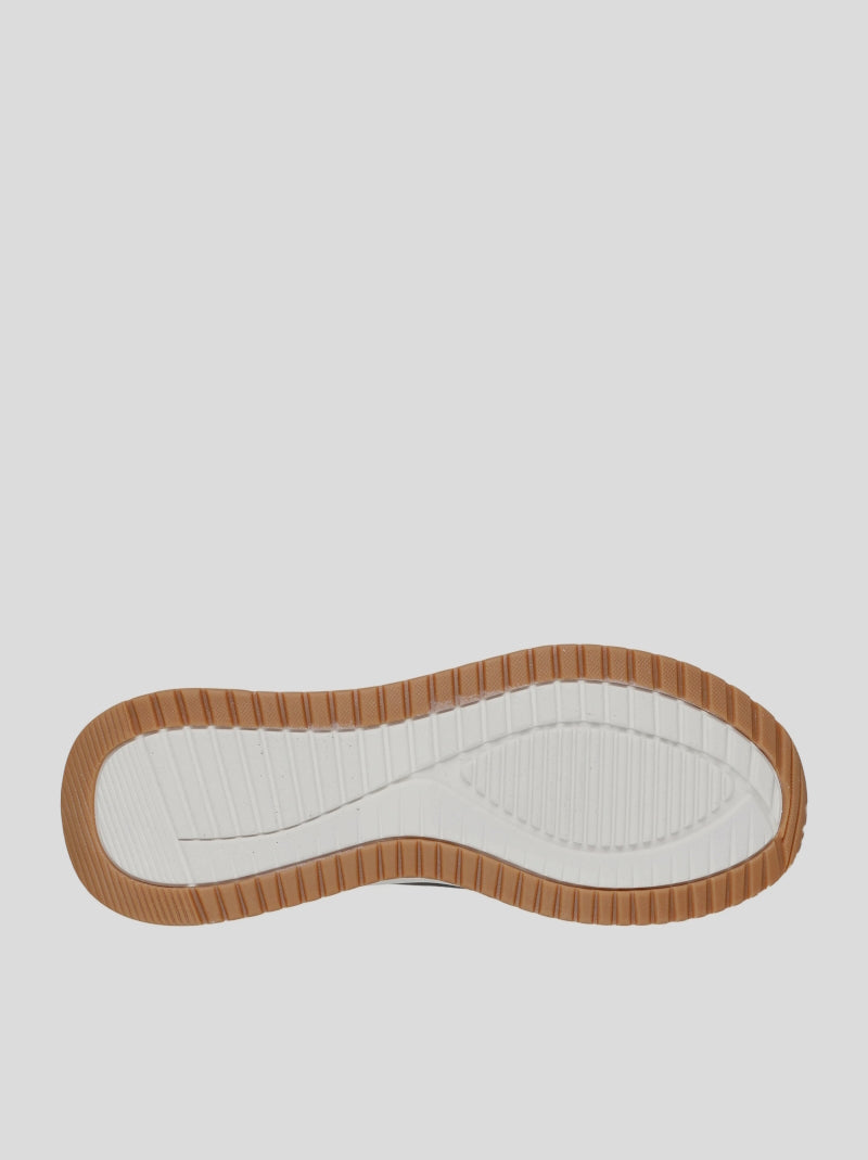 SKECHERS Hombre Hands Free Slip-ins®: BOBS Sport™ Squad Chaos 4 - Direct Step color NEGRO. Zapatillas Slip-On, diseñadas con el sistema exclusivo Heel Pillow™, Parte superior de cuero vegano con cordones elásticos y plantilla Skechers Memory Foam™.