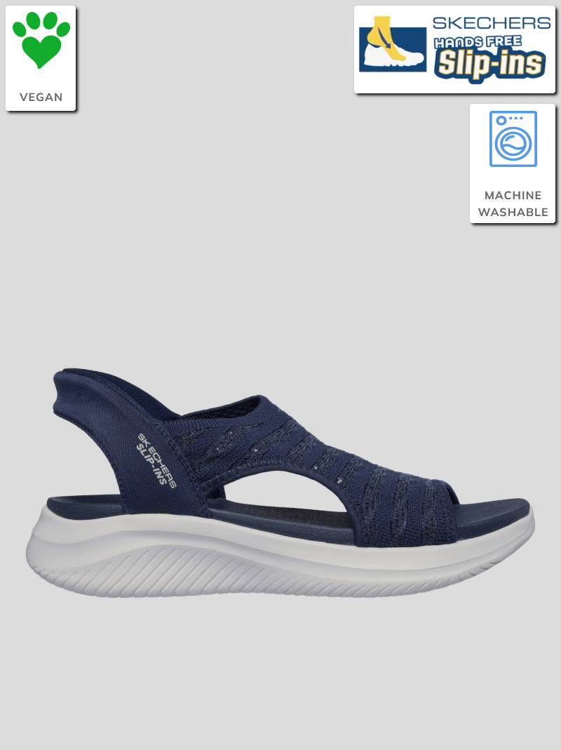 Sandalia vegana de Mujer SKECHERS SLIP-INS modelo ULTRA FLEX 3.0 - SUN WARMTH. Cómoda sandalia transpirable con talón Slip-Ins® que presenta una parte superior de malla MARINO con banda en H con transparencias. Plantilla YOGA FOAM con amortiguación.