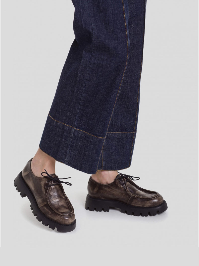 Wallabee WONDERS en piel envejecida MARRÓN TAUPE. Diseño clásico con puntera redonda ribeteada y cierre de cordones. Plantilla piel con MemoryGel. Suela ultraligera WondersFly con piso track de tecnología FLY GRIP con una absorción y agarre superiores.